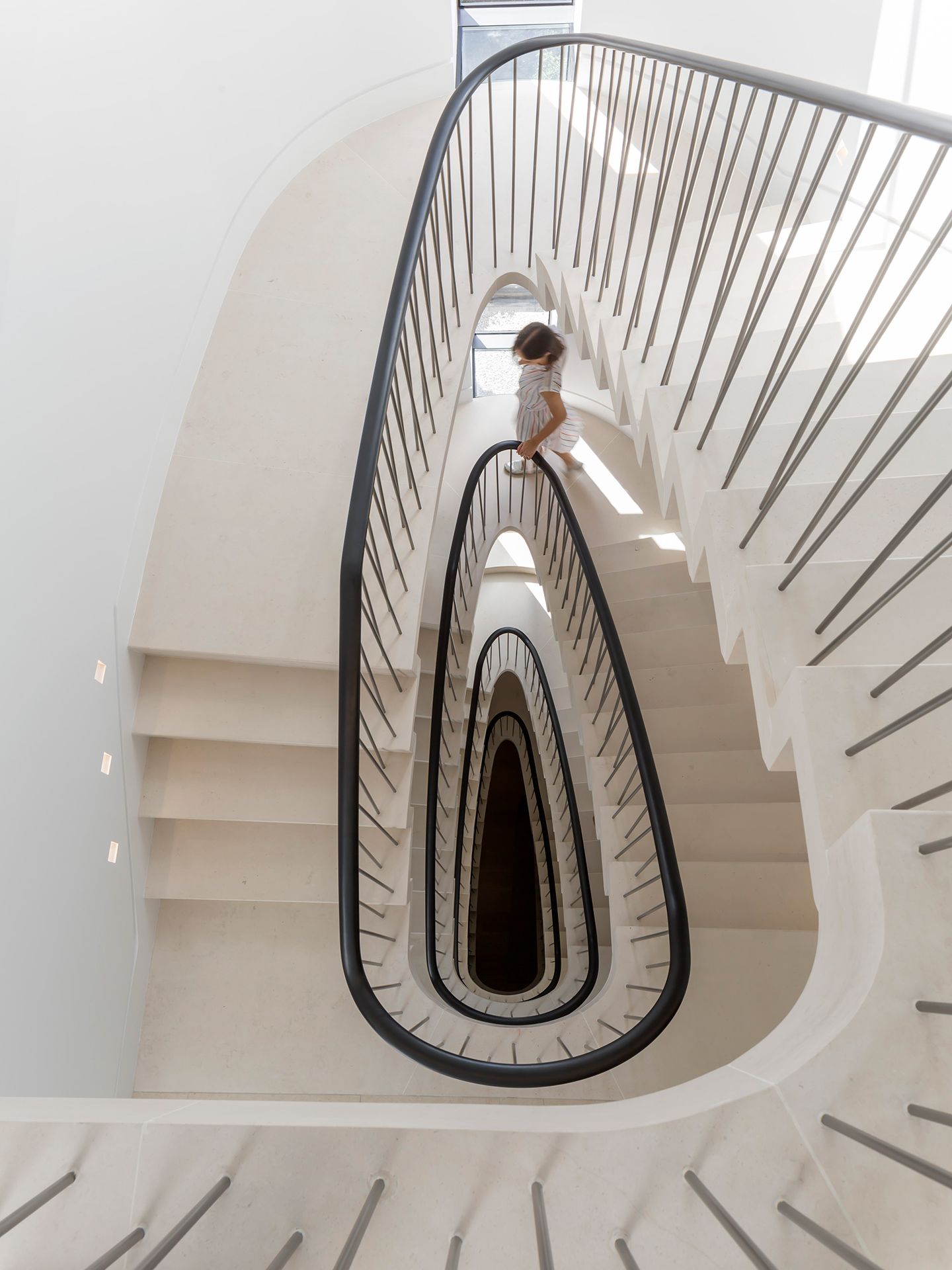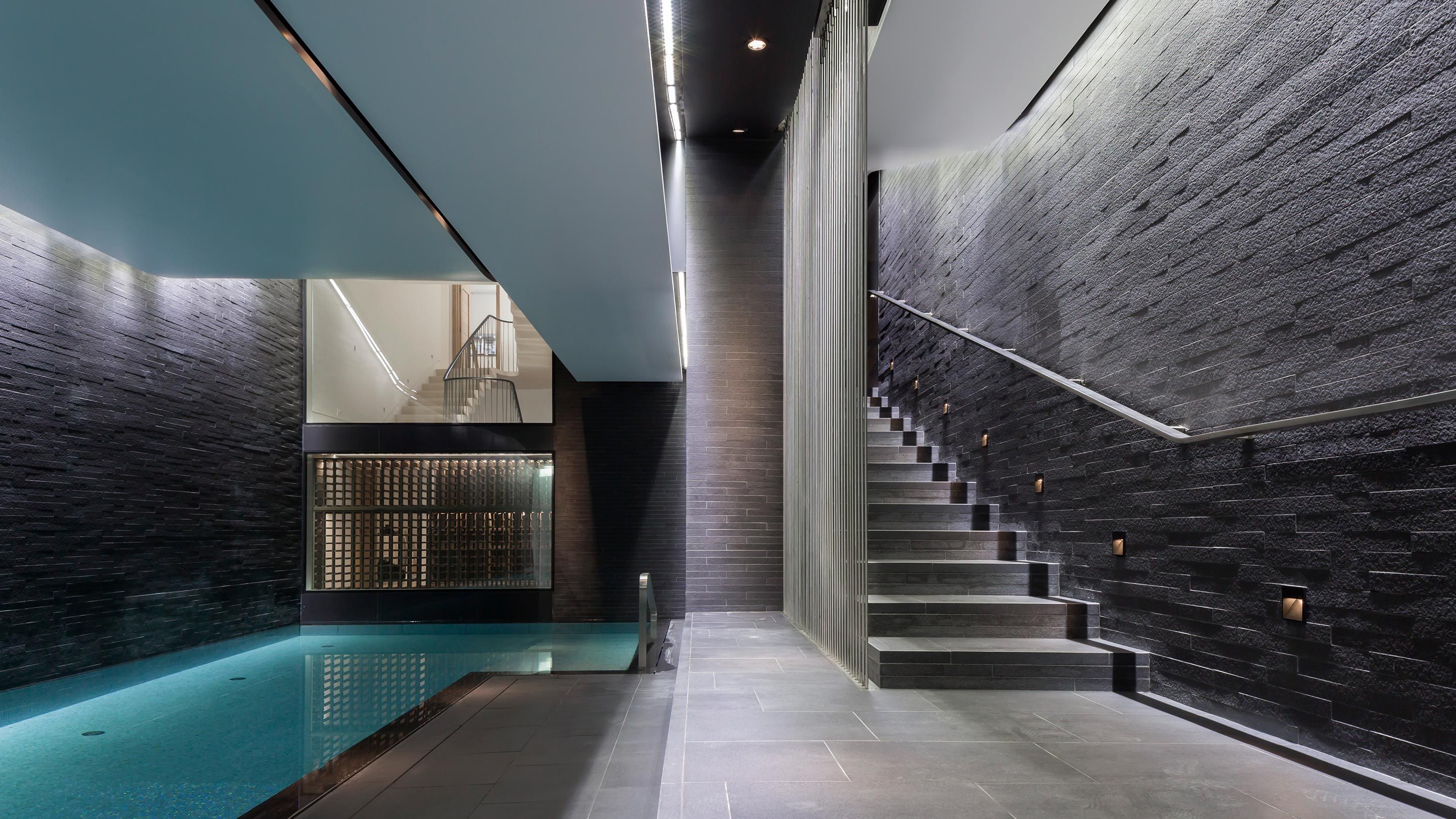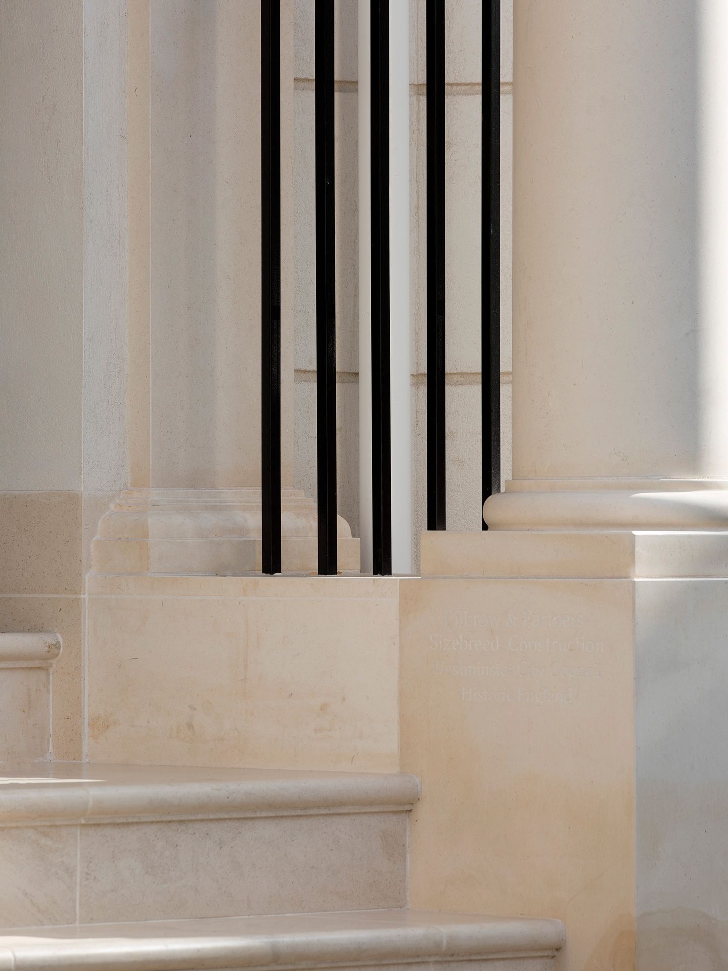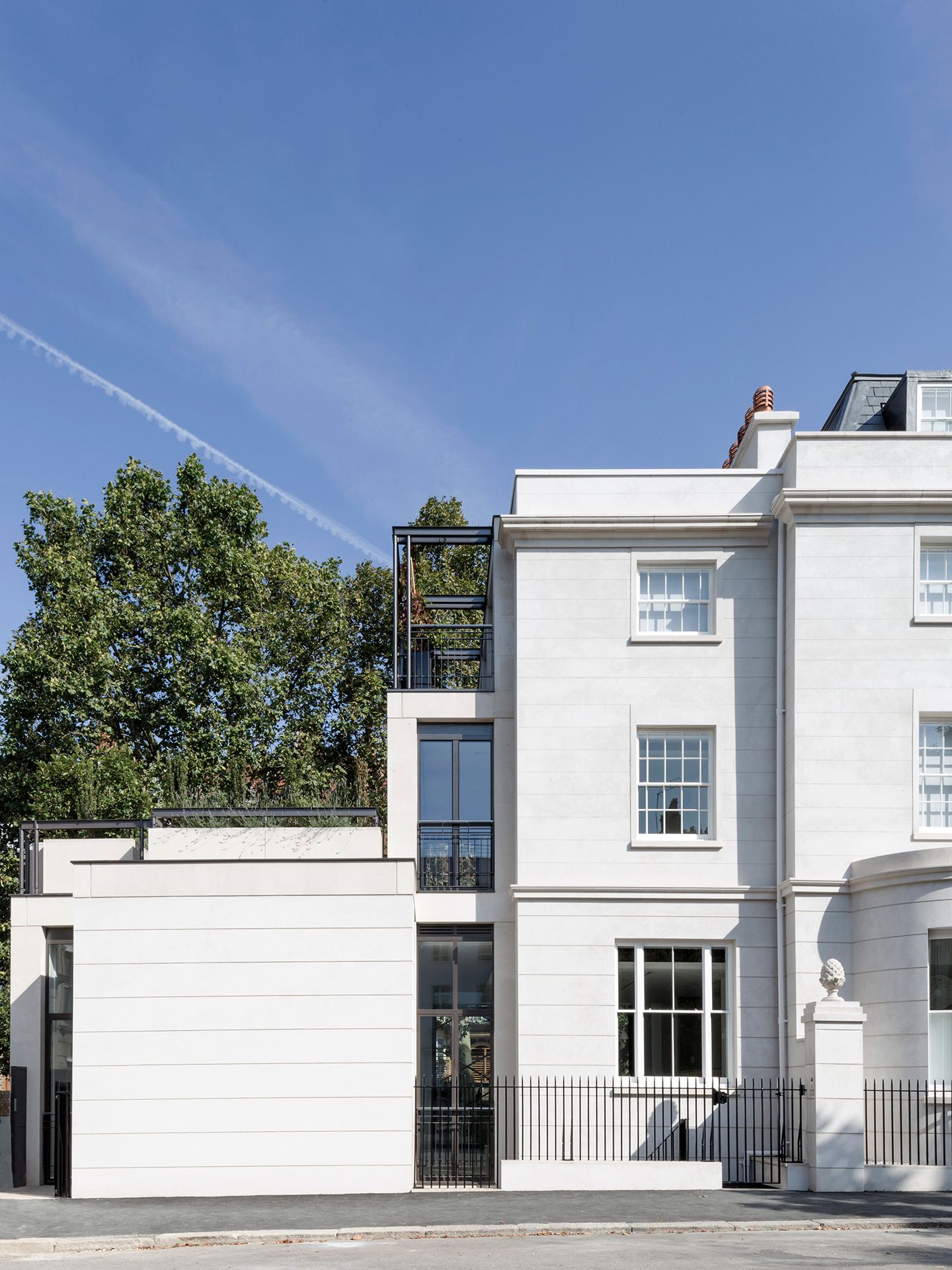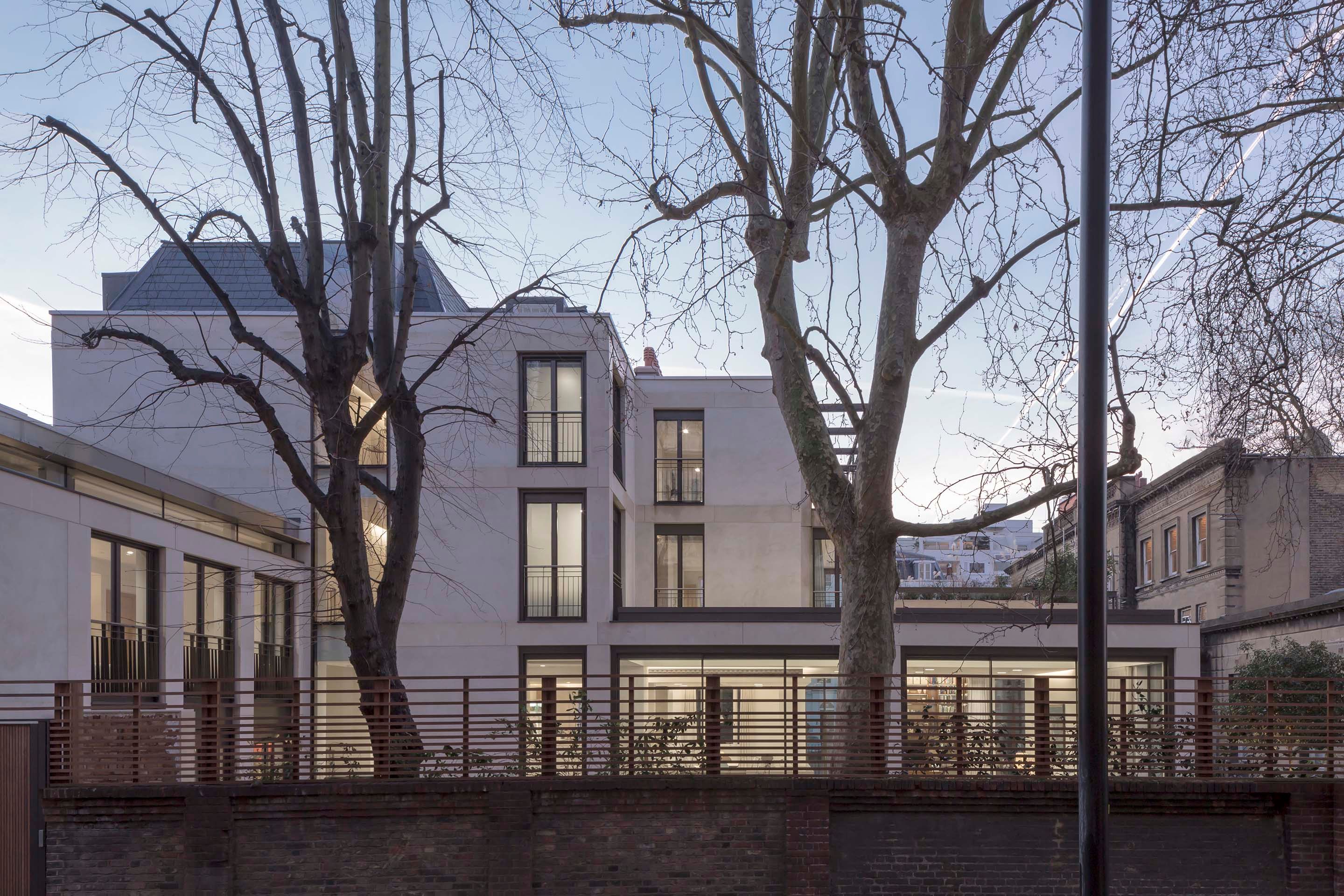 Our remodelling of 3 Orme Square, a Grade II-listed home, reasserts the elegant architectural composition and qualities of the original 1826 villa. The refurbishment also enhances the coherence and character of Orme Square, a private Regency-era square next to Kensington Gardens in Bayswater. By replacing a series of unsympathetic wraparound extensions with carefully scaled, set-back volumes, to create new wings to the north and east of the original home, we reinstated the residence’s symmetrical three-bay primary frontage. In keeping with surrounding heritage homes, our design incorporates a new mansard roof, bringing more living space and additional prominence to the villa’s primary elevation. Inside the new wings, fluid contemporary living spaces, with floor-to-ceiling windows contrast with and complement the original building’s more traditional interiors. A new, central, cantilever sky-lit limestone stair connects the two elements of the building, fusing traditional and contemporary craftsmanship. A single basement storey was fully excavated to provide space for a private pool. New high-performance materials specified for the contemporary wings are met with subtle fabric upgrades within the heritage building. A closed loop ground source heat pump provides heating, cooling and hot water, coupled with energy-efficient systems to ensure ongoing low-carbon operation for the home’s residents.