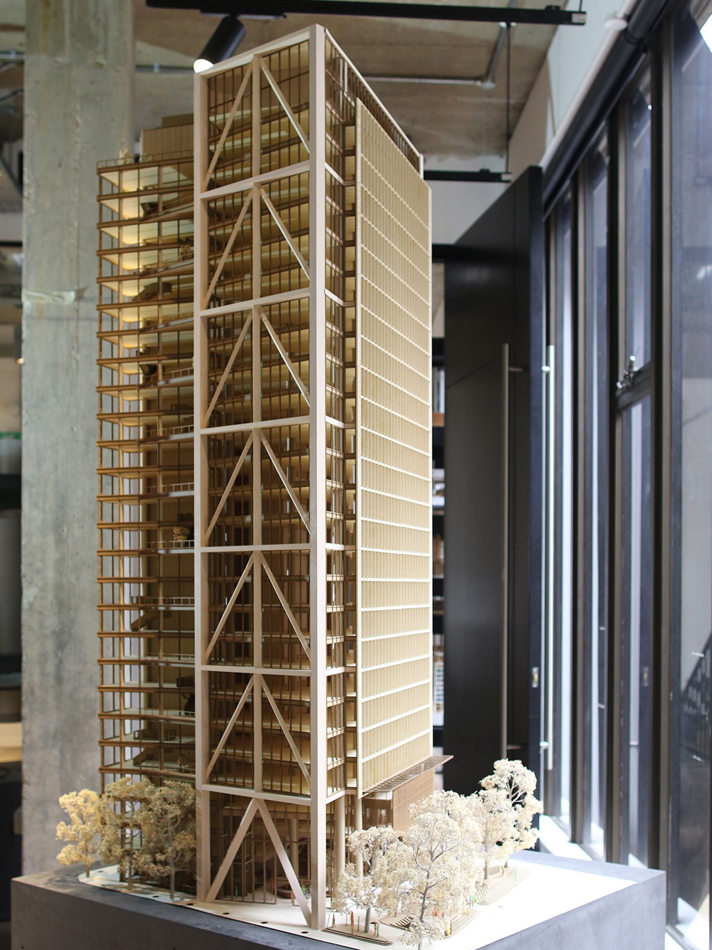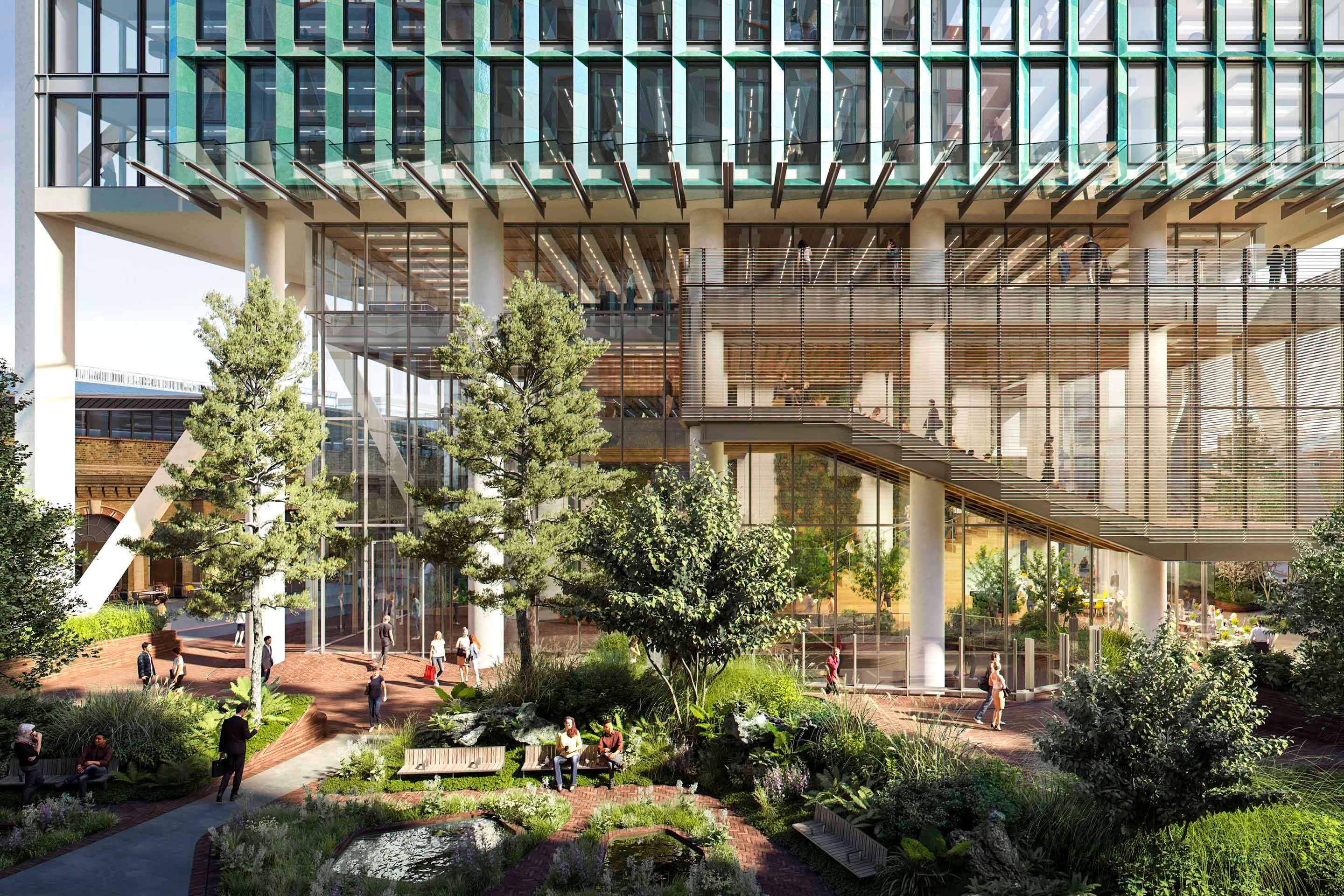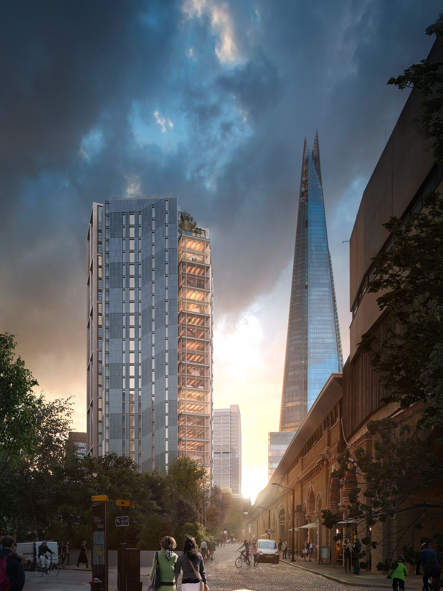 EDGE London Bridge, situated within the emerging tall-building cluster near The Shard, is set to be one of the country’s most sustainable tall buildings. The first UK project by pioneering real estate developer EDGE, the slender 28-storey tower will offer exemplary workspaces to both established businesses and local start-ups. The building’s open, four-storey plinth will comprise a publicly accessible lobby, café, auditorium and free flexible workspaces. It will also provide tenants with accessible outdoor spaces including a new public park, planted balconies and a shared roof terrace, plus a fully equipped gym and over 500 cycle storage spaces. The tower's expressed structural frame honours Bermondsey's Victorian engineering heritage. Inside, the design fosters vertical connectivity, promoting interaction across levels, with flexible CLT floorplates allowing for adaptable internal configurations. The compact plan is designed to deliver generous daylighting and panoramic views, while the high-performance glazed terracotta elevations will optimise shading and minimise solar heat gain and glare. Openable façade elements on each level will offer natural ventilation, while smart building technologies, including chilled ceiling panels with integrated lighting sensors will enhance workplace comfort with minimal environmental impact. The building is designed to achieve BREEAM Outstanding and WELL Platinum accreditations. Bold, vibrant and verdant landscaping is conceived as an integral part of the public realm, and will cascade into the building interior, increasing the site’s biodiversity and allowing workers and residents opportunities to connect with nature in this urban setting. Bespoke design elements also include signage made from clay salvaged from the foundations.