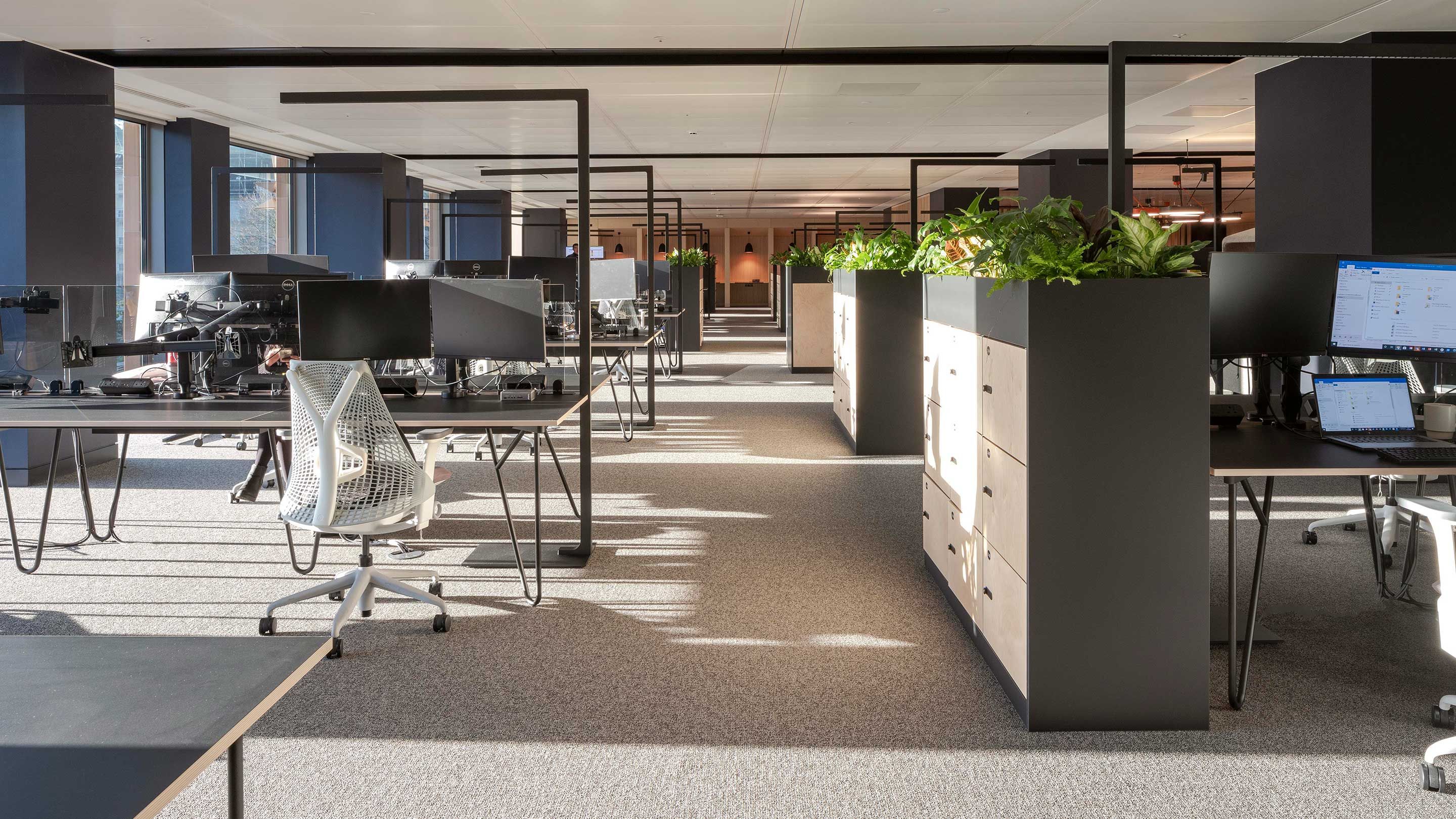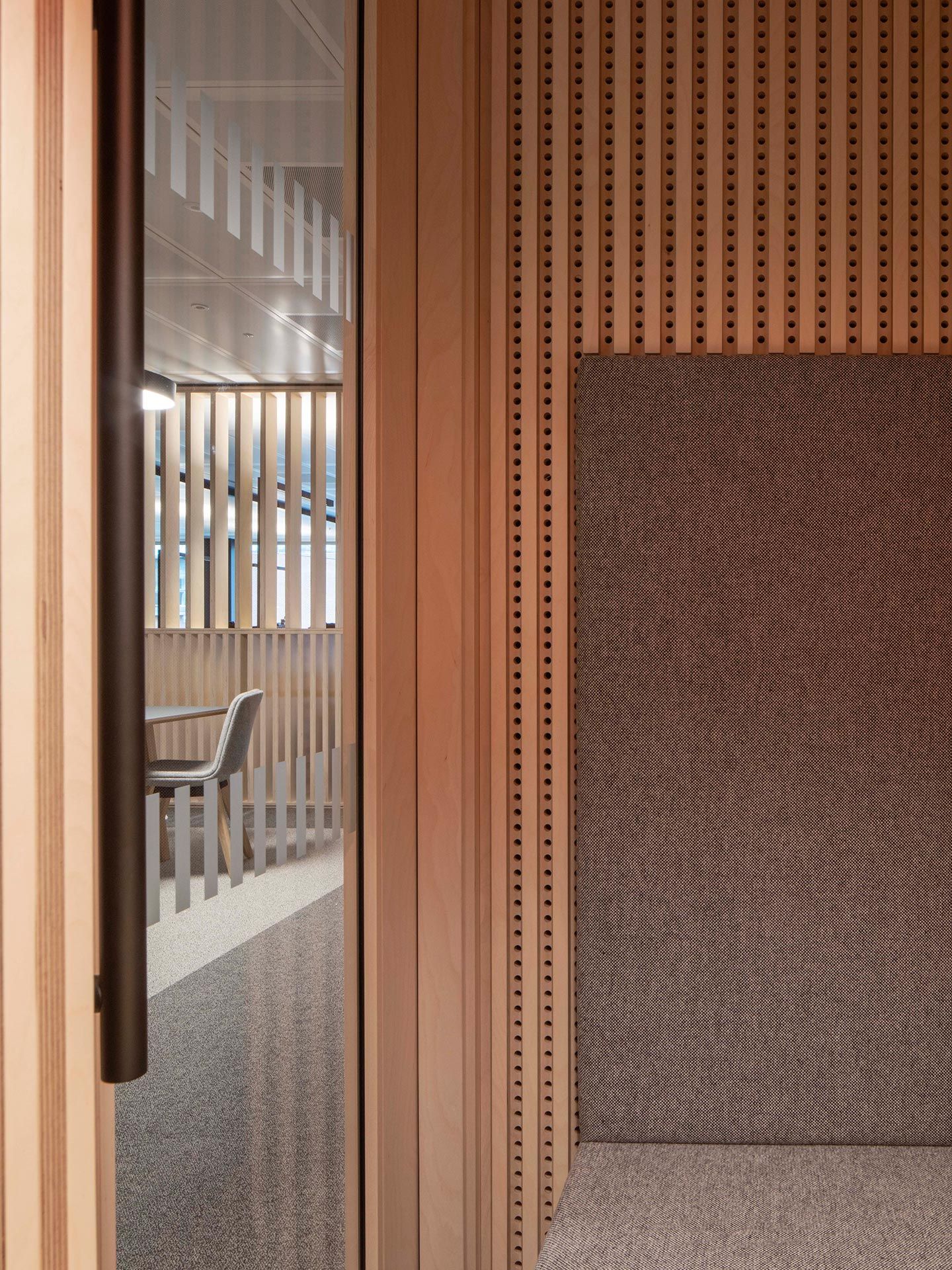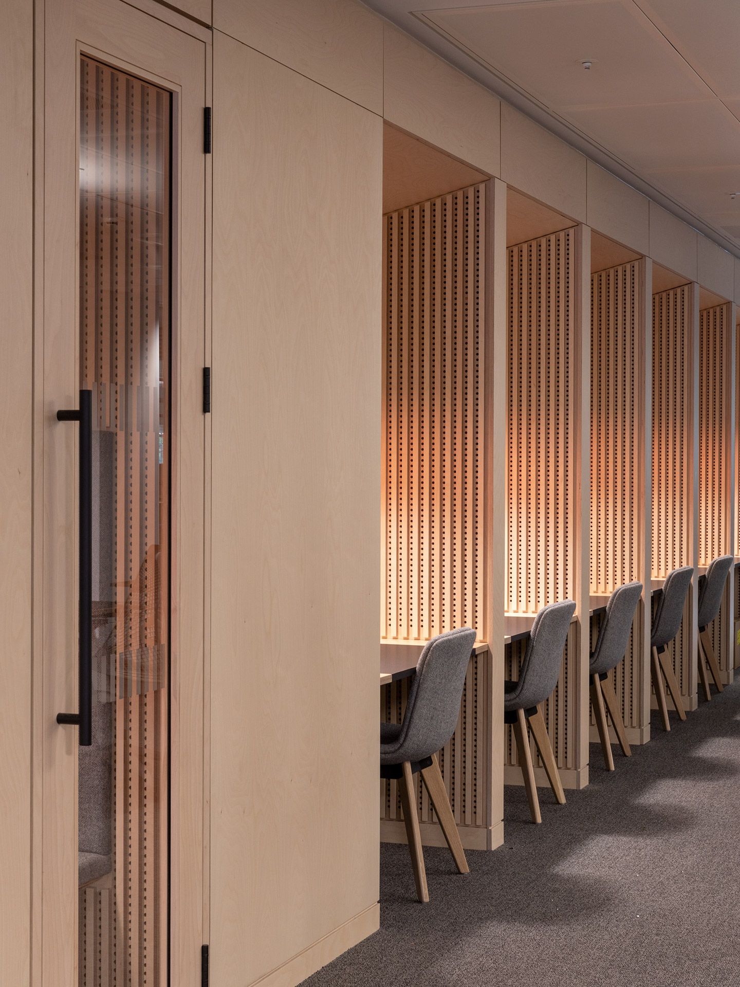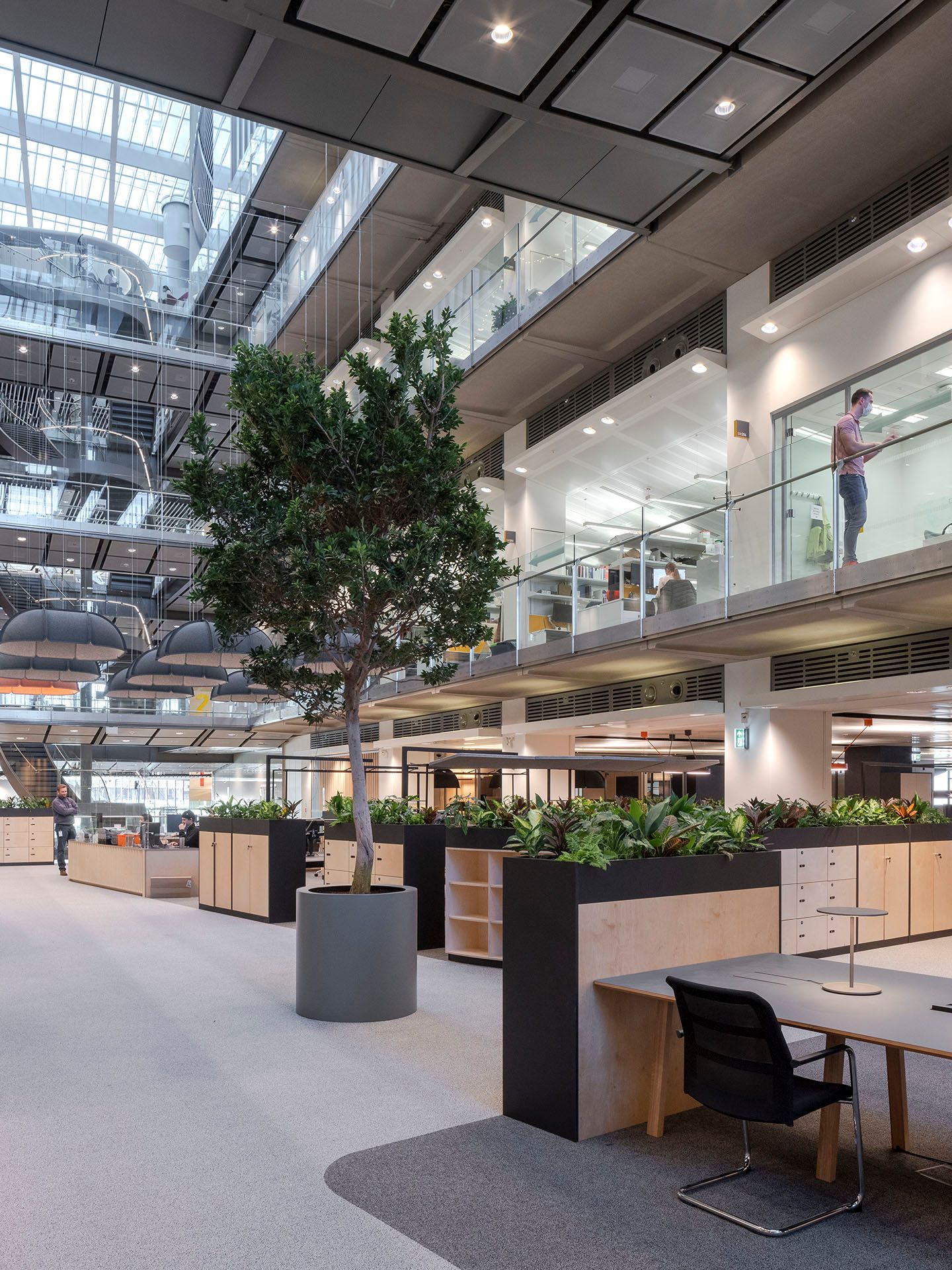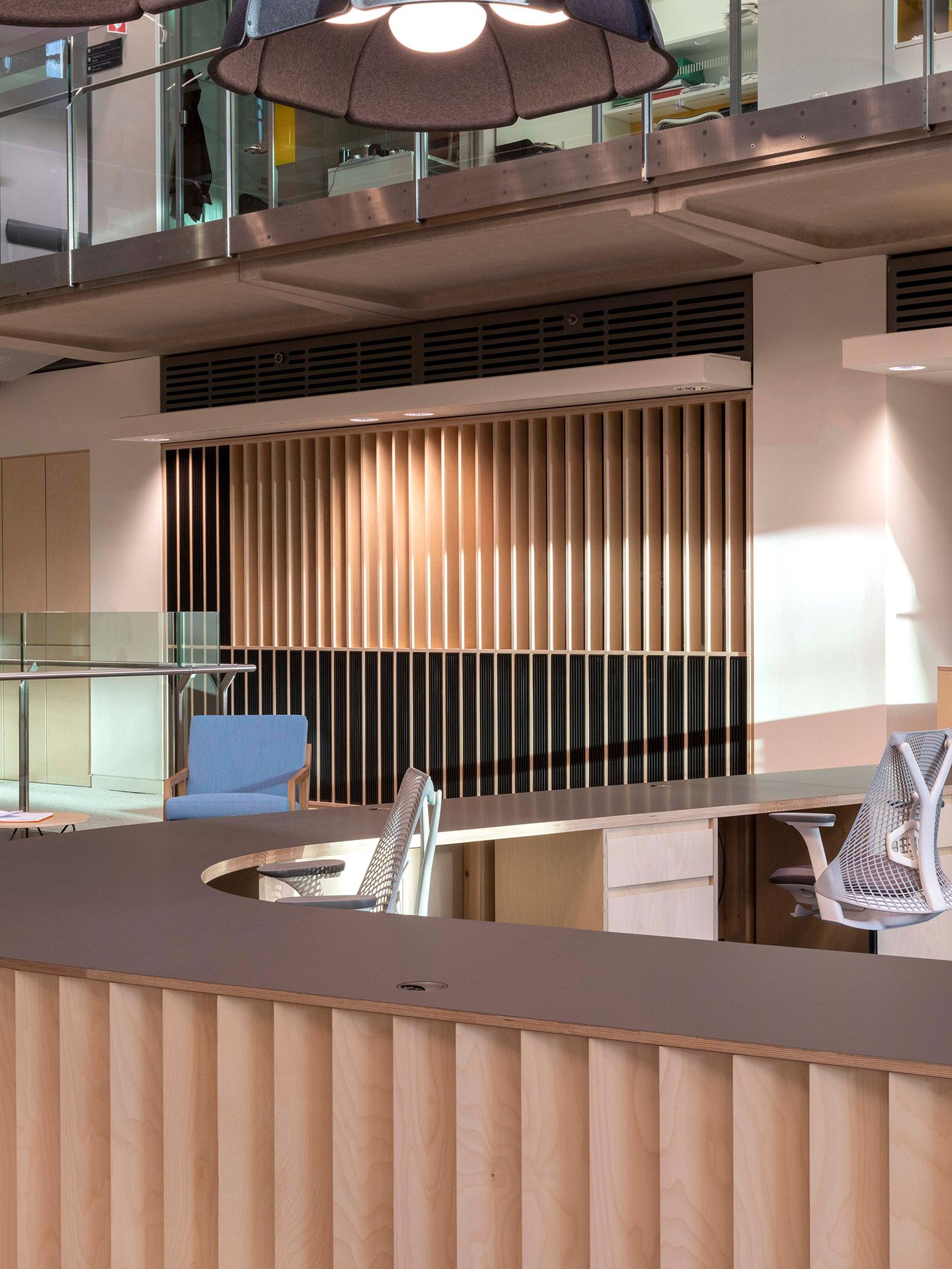 Reconfiguring the working environment of the Francis Crick Institute’s 250-strong support team, the project creates a more collaborative environment centred around knowledge-sharing between departments. Founded as a partnership between three universities and three research bodies, the institute is Europe’s largest biomedical research facility, accommodating 1,500 scientific staff in London’s Kings Cross. We sought to understand and integrate the client’s diverse needs within the design by undertaking a rigorous and sophisticated consultation process, which included questionnaires, in-person interviews and behavioural studies. Our data-driven approach revealed surprising insights, such as disparity between perceived (70%) and actual (40%) desk usage. This approach also built trust between the institute, its employees and our design team. Patterns of movement, desired adjacencies and visual interrelationships became inputs for a form-finding AI algorithm developed by our in-house specialists. These tools helped to evolve a variety of configurations, which were refined using physical models for further staff consultation. The resulting interior features a legible layout in which each of the 12 departments has access onto the main circulation route, quieter areas for focused work, and formal and informal meeting spaces, facilitating effective connection and collaboration between the institute’s researchers and support staff. A palette of natural material and colours contrasts with the expressed concrete and steel lab interiors enhancing wellbeing and establishing a sense of identity and place. The Francis Crick Institute was originally designed by HOK and PLP, where Fred Pilbrow was the design partner on the scheme.