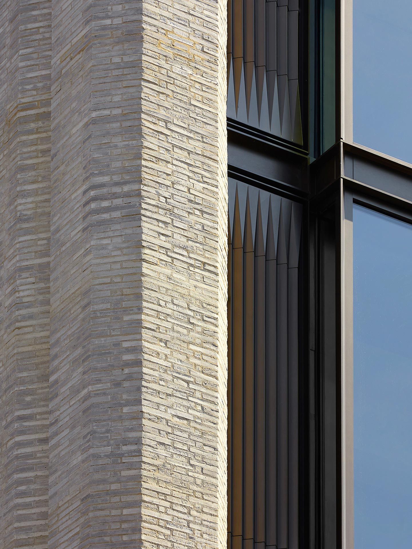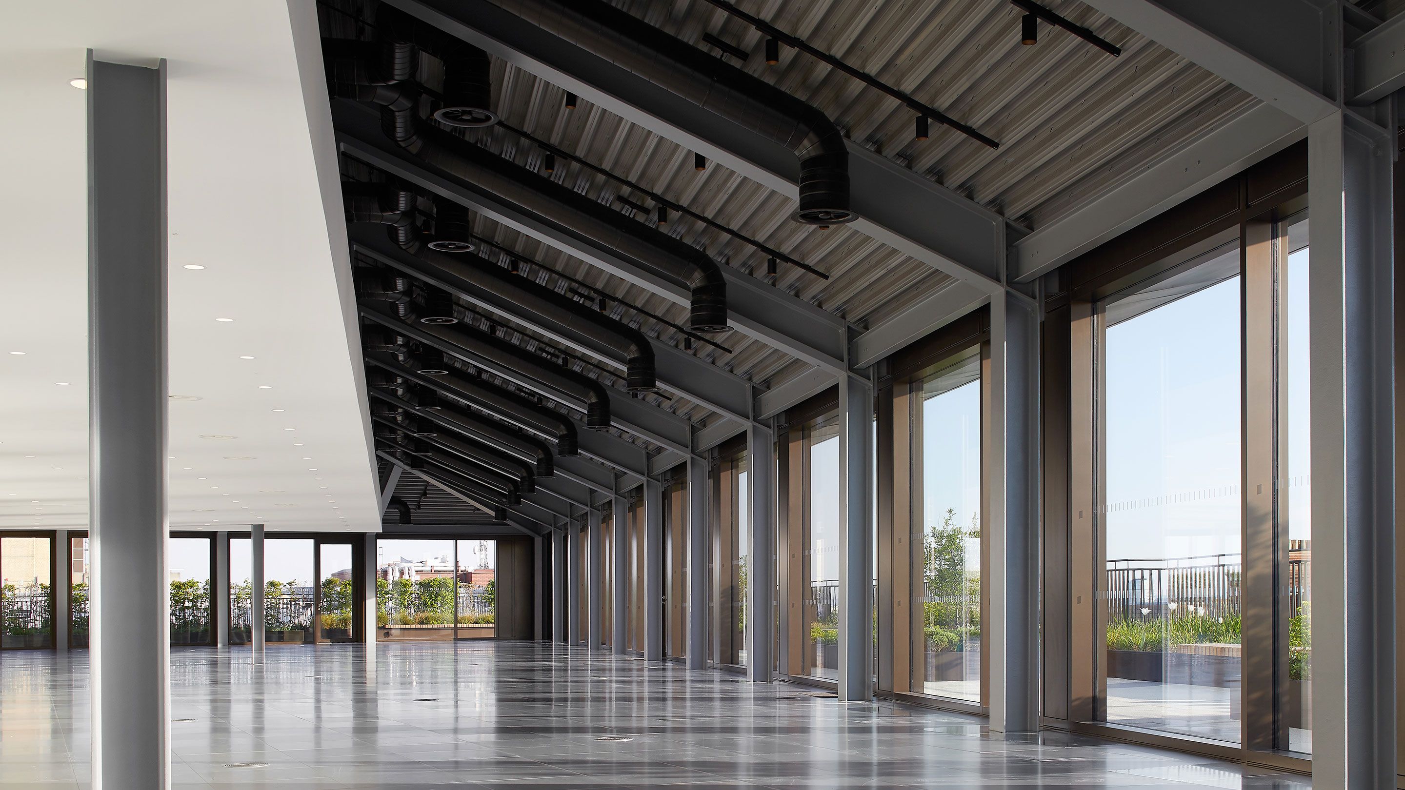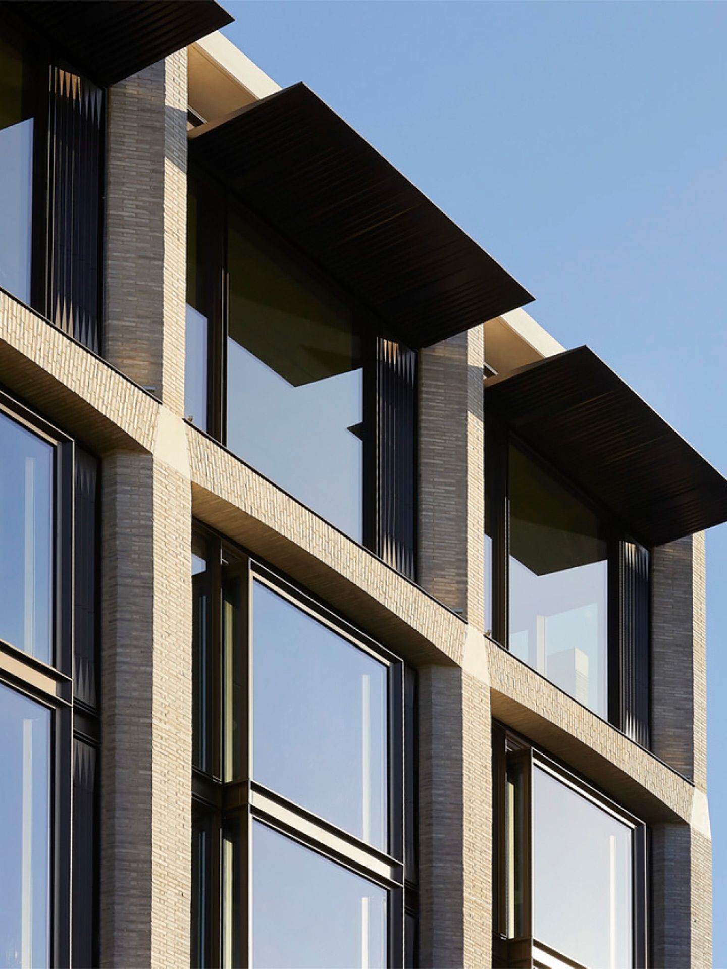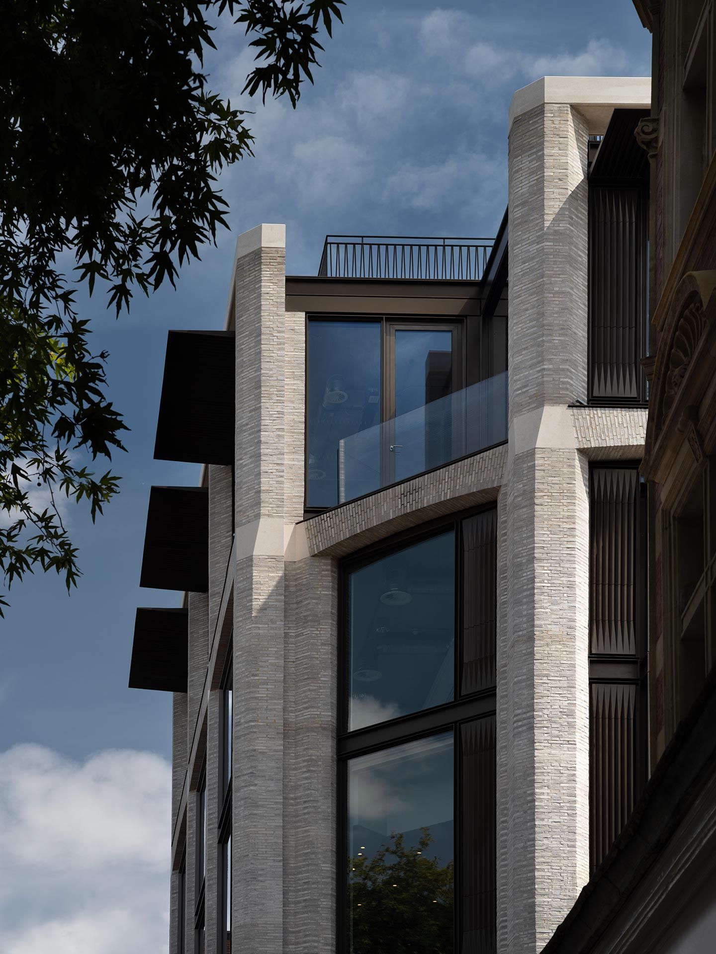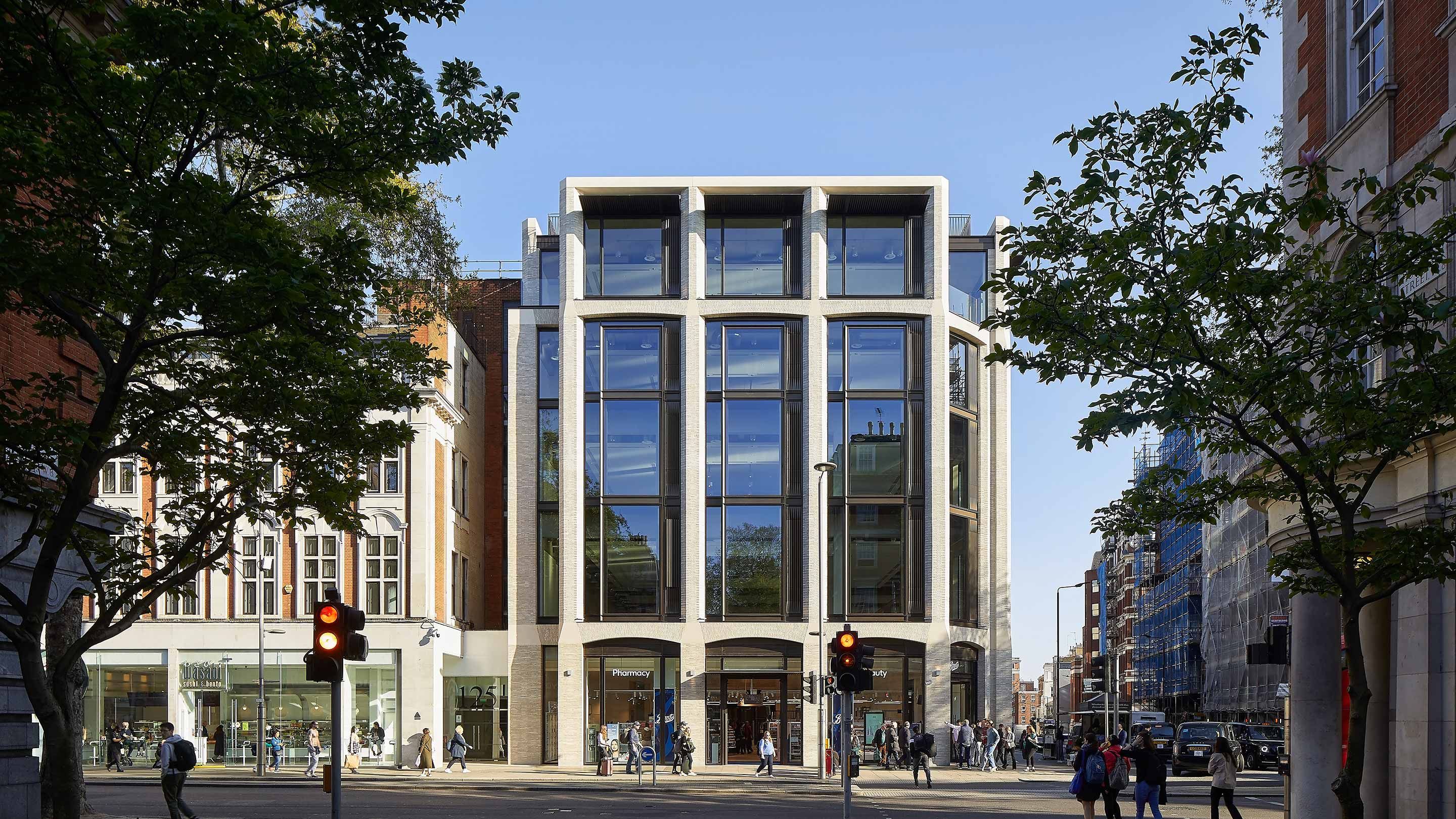 A former 1970s department store on Kensington High Street is reimagined as a contemporary workspace that enhances the architecture, interiors and public realm. The mixed-use retrofit project also improves connectivity to Kensington High Street Underground Station through the recreation of a lost retail arcade. After stripping the building to its concrete frame and extending the structure to meet the street line on Wrights Lane, we designed new elevations in white Roman brick and pale Moleanos stone, in keeping with the area’s heritage buildings such as Derry & Toms and Barkers department stores. A remodelled five-storey frontage faces onto the high street, while a side elevation stepped back at the upper levels incorporates richly landscaped garden terraces providing a buffer between adjacent buildings. At ground floor we worked to consolidate multiple entrances and cores into a single, central lobby, with inbuilt flexibility, delivering open, naturally lit workspaces. Renewed retail frontages and the galleria further activate the building at street level. Internally, the building comprises a carefully curated material palette of exposed concrete, artisanal bricks, warm timber, and patinated copper. The retrofit combines a thermally efficient envelope with environmental systems that marry operational energy efficiency with high wellbeing standards. Openable panels within the façade allow natural ventilation, and the building integrates sophisticated sensors and controls, air source heat-pumps and photovoltaics. The project has achieved both BREEAM Excellent and WELL Gold certification and received the 2023 BCO award for Best Refurbished/Recycled Workplace.
