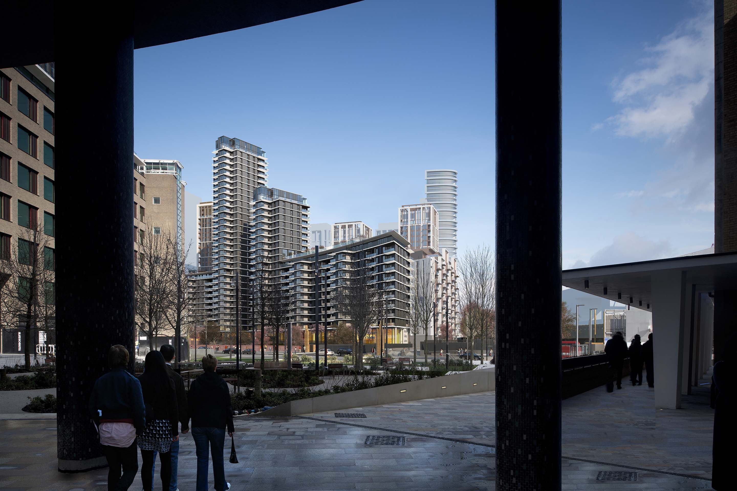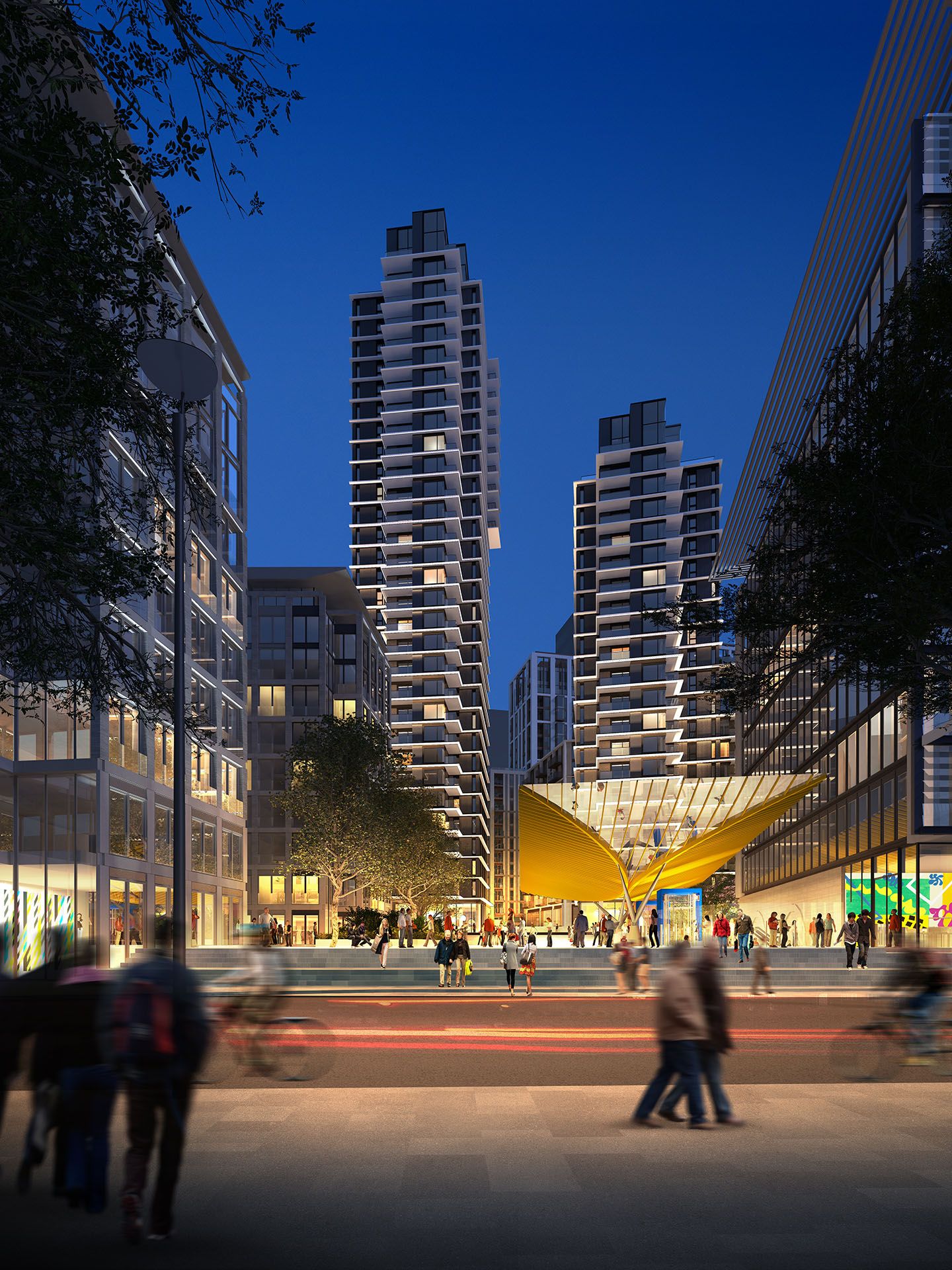 Westmont will create a new landmark for the White City urban quarter, delivering over 500 homes, along with 10,000 sq. ft. of new public-facing facilities for Imperial College London, all lining a new public route leading to Imperial’s new White City Campus. The development’s overall crescent form is articulated with a series of transverse wings for clusters of eight apartments, varying from one to three-bedroom homes. The curved linear arrangement and cruciform plan optimises the number of dual aspect apartments, and a generous balcony for each home is integrated into the overall form and design of the crescent, including the 22 and 32-storey towers. As well as bringing articulation, the external terraces will deliver passive environmental shading, at the same time protecting natural light into internal living areas, and outward views. A shared roof garden and a club room will be located along the top level of the southern crescent, while community and leisure spaces, including exhibition and lecture theatres, and communal gardens to the east, will enliven the scheme at street level. A generously scaled exhibition space for Imperial will create a welcoming entrance, further activating the public realm at the south and west of the building. Acting as a gateway between Wood Lane Underground Station and the new White City Living quarter, the scheme will bring greater interconnectivity to this fast-emerging west London neighbourhood.